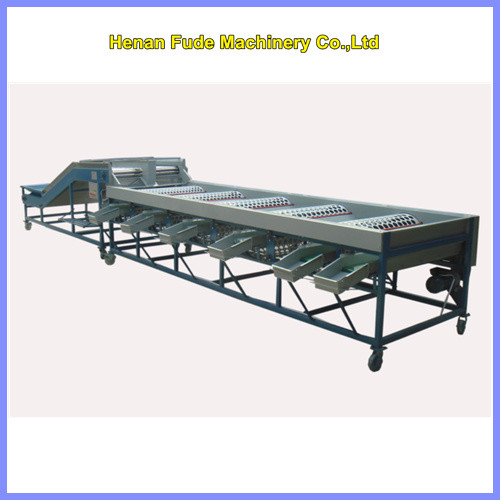 The machine made by feeding conveyor and grading two parts, suitable for garlic grading.